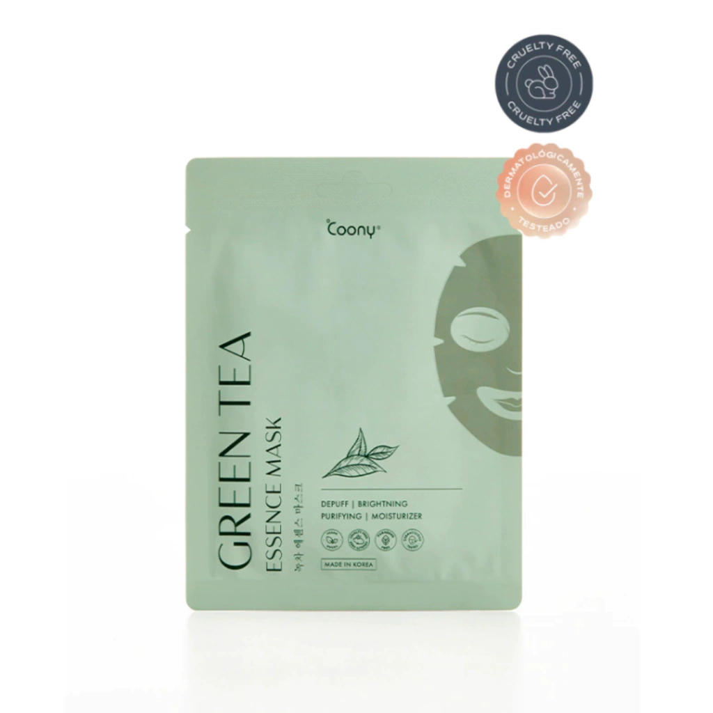La mascarilla facial con esencia de té verde de Coony es un tratamiento intensivo que ayuda a equilibrar, purificar y dar luminosidad al rostro. Formulada en Corea con ingredientes de alta eficacia, esta mascarilla es ideal para pieles oleosas o mixtas, ya que controla el sebo sin resecar.